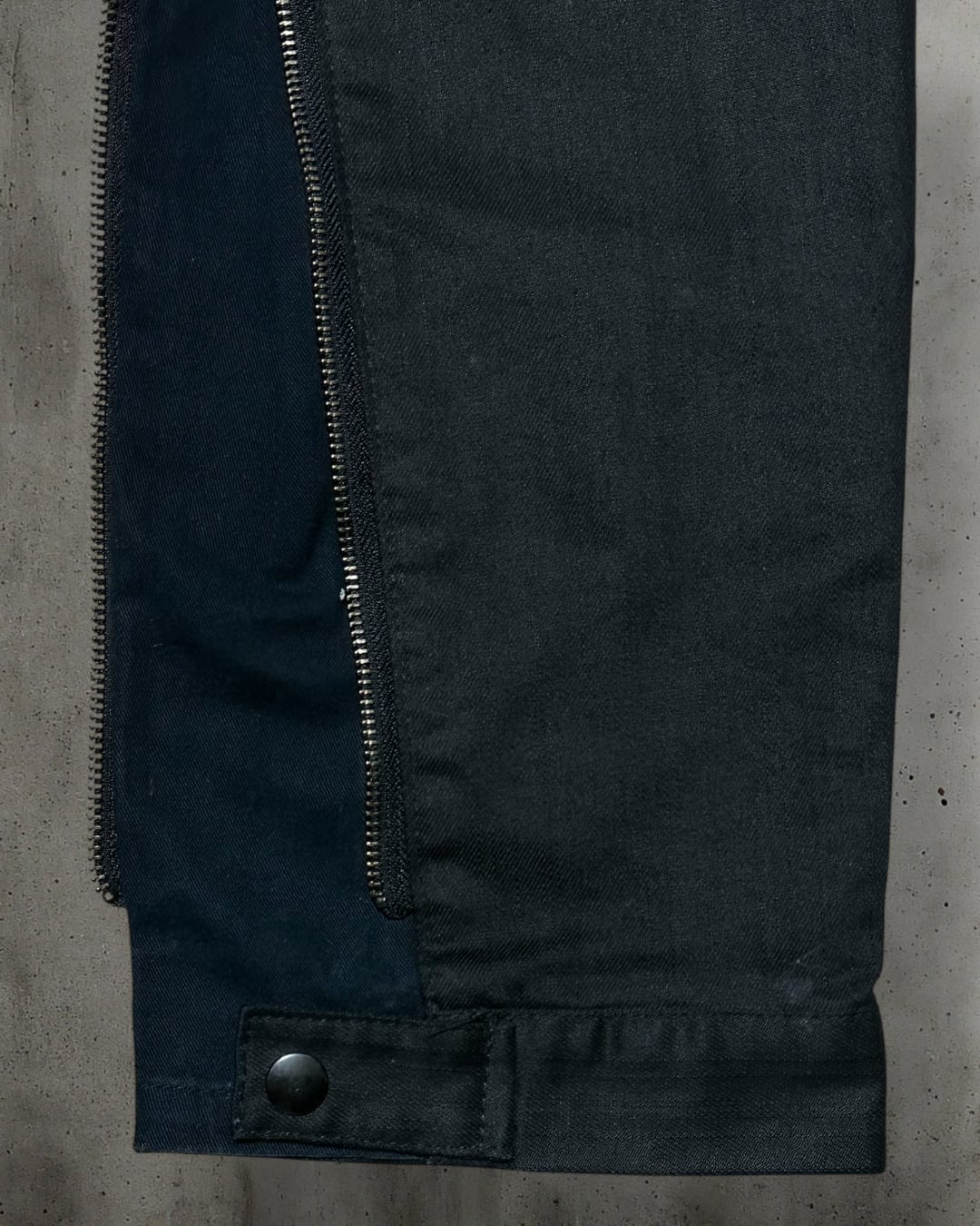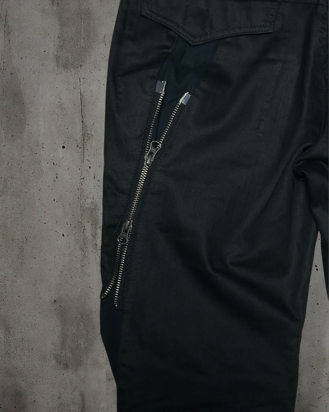 細身のレッグラインをベースに、腿から裾にかけて縦に走るジップを配置。