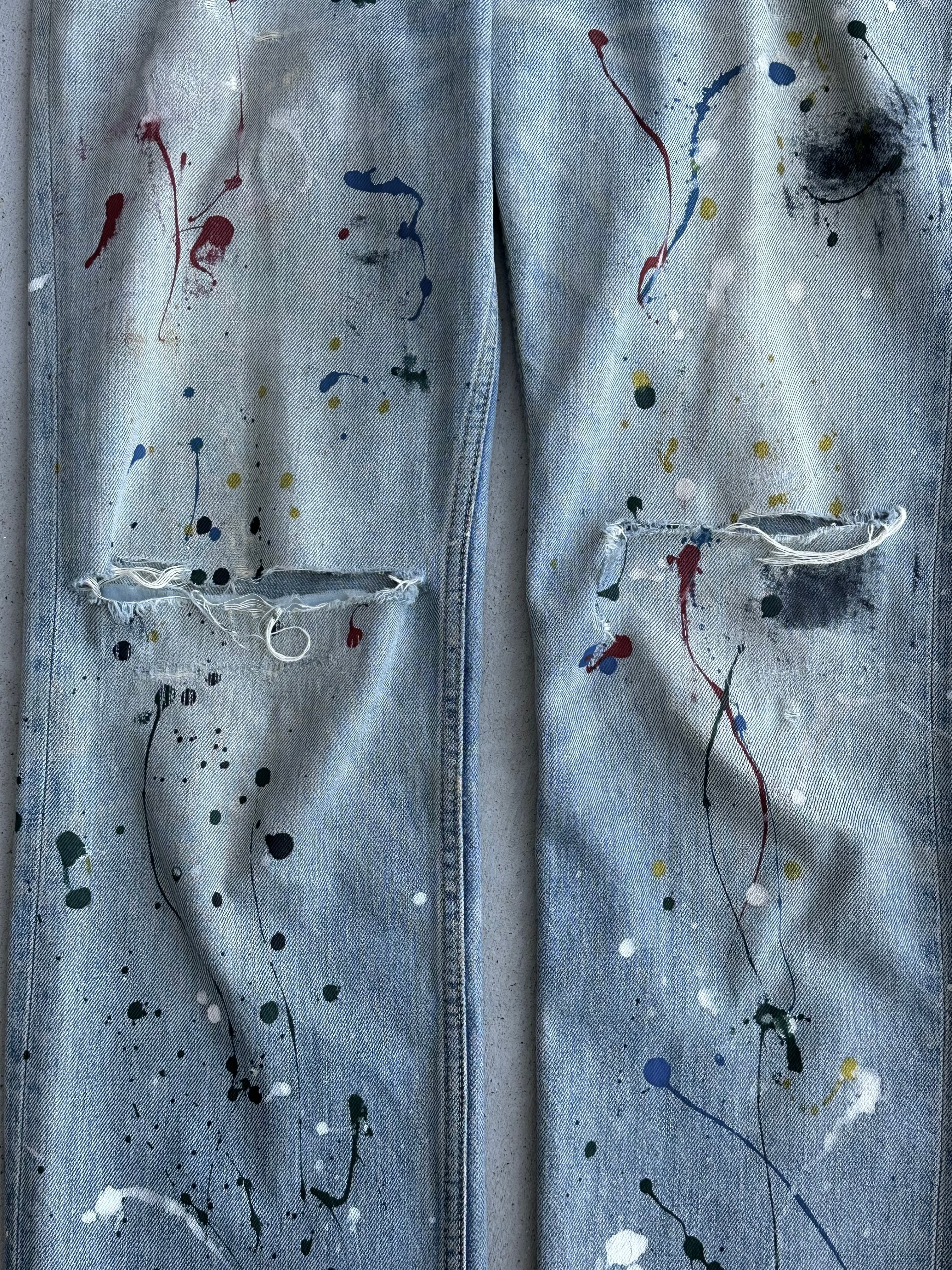 ナンバーナインの2006年春夏、通称「ガンズ期」を代表する名作、ペンキ加工デニムパンツです。